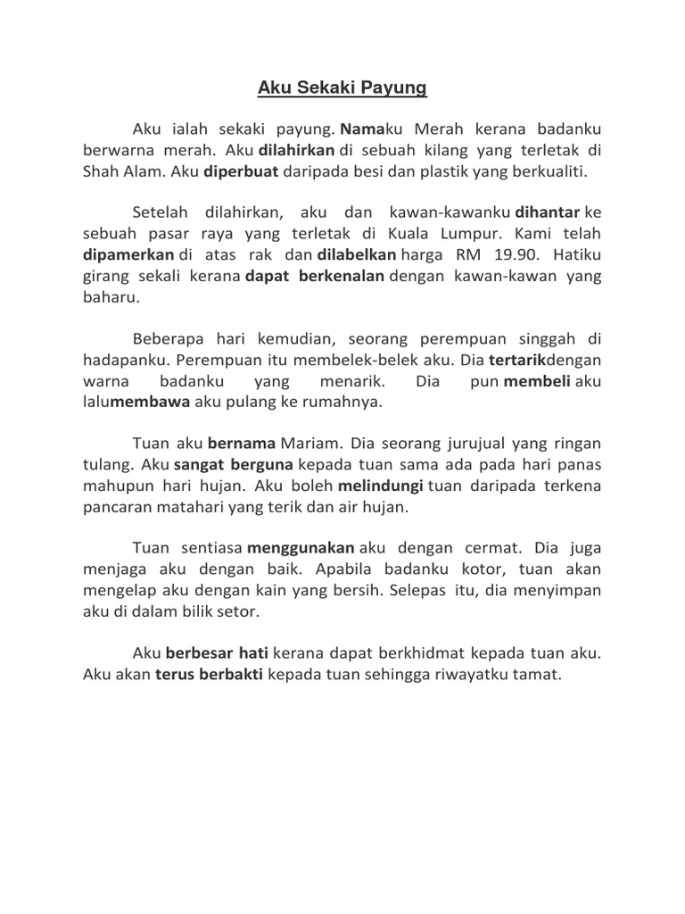 Contoh Karangan Autobiografi Aku Sekaki Payung